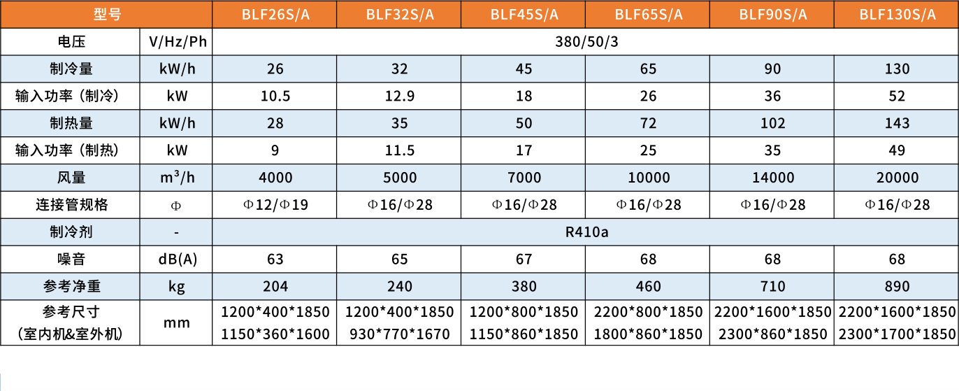 Ta enota ima razdeljeno zasnovo, s talno stoječo notranjo omarico in zunanjo enoto, sestavljeno iz enega ali več zunanjih modulov. Na voljo je v dveh glavnih modelih: enojno hlajenje ter hlajenje in ogrevanje. Model za hlajenje in ogrevanje je lahko opcijsko opremljen s pomožnim električnim ogrevanjem. Vse enote, ki se ponašajo z vrhunsko zmogljivostjo, nizkim hrupom, enostavno namestitvijo in zanesljivim delovanjem, je mogoče povezati tudi s sistemom za daljinsko spremljanje s funkcijami samodejnega zaznavanja napak in alarma.