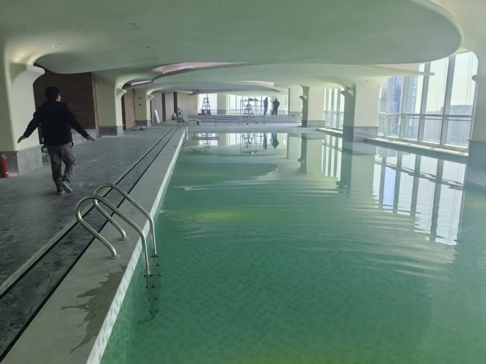 Po istem orientalskem estetskem dizajnu ima območje bazena panoramska okna od tal do stropa, ki pokrivajo celotno steno in ponujajo neposreden pogled na reko Xiangjiang in Orange Isle. Ponoči lahko gostje uživajo v mestnih lučeh in ognjemetih nad otokom Orange Isle, zaradi česar je to eno izmed priljubljenih hotelskih mest za fotografiranje.